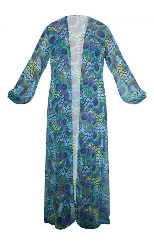 PrettyLittleThingKimono en mousseline de soie à manches ballon et imprimé paon multicolore