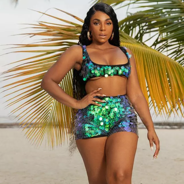 The Short black sequined of Ashanti on the account instagram of @ashanti