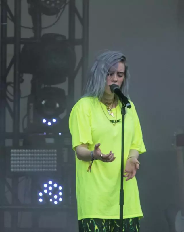 "Billie" Lime Green T-Shirt worn by Billie Eilish for Lollapalooza Festival at Grant Park on August 2, 2018 in Chicago, Illinois