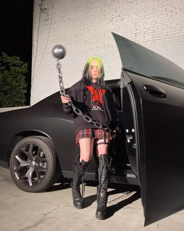 Dolls Kill Crimson Dress Code Plaid Skirt worn by Billie Eilish on the Instagram account of @Blohsh