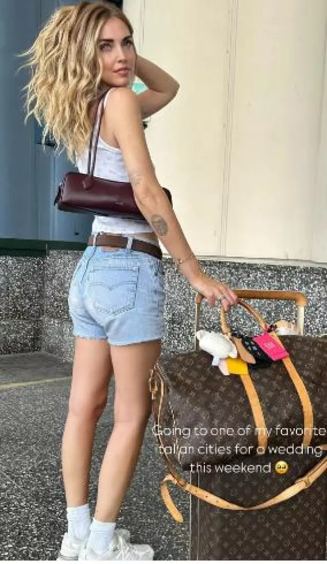 Louis Vuitton Brown Monogram Canvas Keepall 50 Bandouliere worn by Chiara Ferragni on her Instagram Story post on June 13, 2025