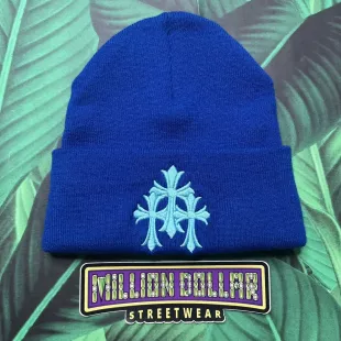 Chrome Hearts Royal Blue Triple Cross Beanie worn by Chief Keef on the Instagram account @chieffkeeffsossa