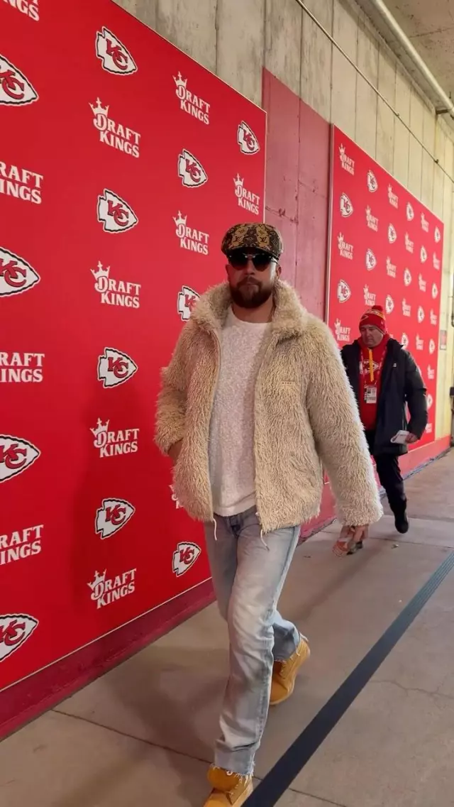 Louis Vuitton x Timberland 6" Boot Wheat Monogram worn by Travis Kelce on the Instagram account @chiefs