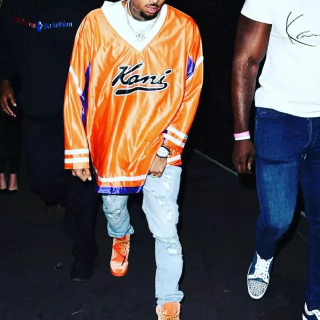 The boots orange Timberland x OffWhite Chris Brown on Instagram