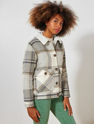 The short coat plaid gray worn by Diana on the account Instagram of @dianeperreau