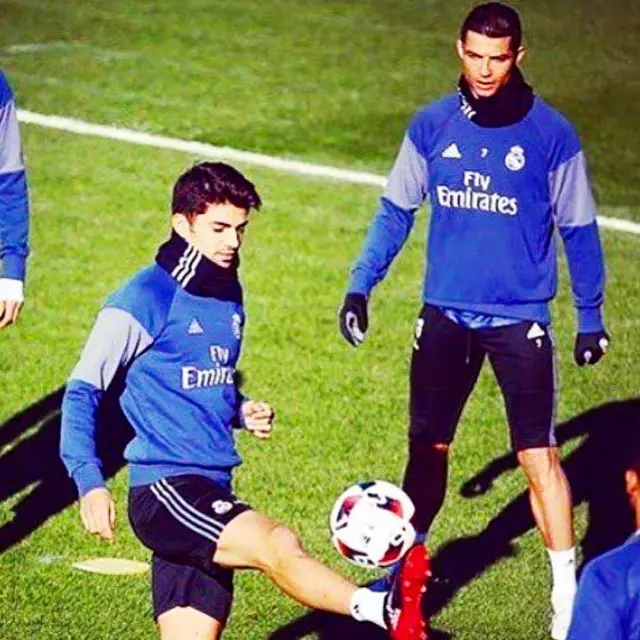 The neck-warmer black Adidas Enzo Zidane at the training on his account Instagram