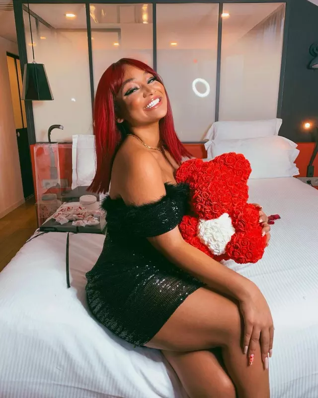 The bear in red and white roses from Anais on his account Instagram @flawlessbyanais