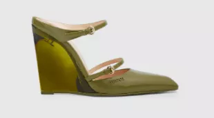 Gucci Wedge Mule in Lime Green worn by Julia Garner at Gucci Show on February 25, 2025