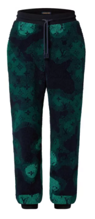 Louis Vuitton Navy & Green Elevation Camo Fleece Sweatpants worn by Travis Kelce on the Instagram account @killatrav