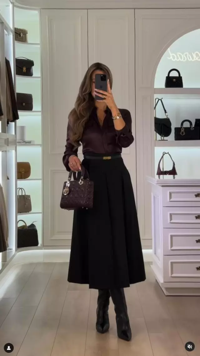 Lamees Mourad is wearing long pleated skirt on her Reels on Instagram account @lameesmourad
