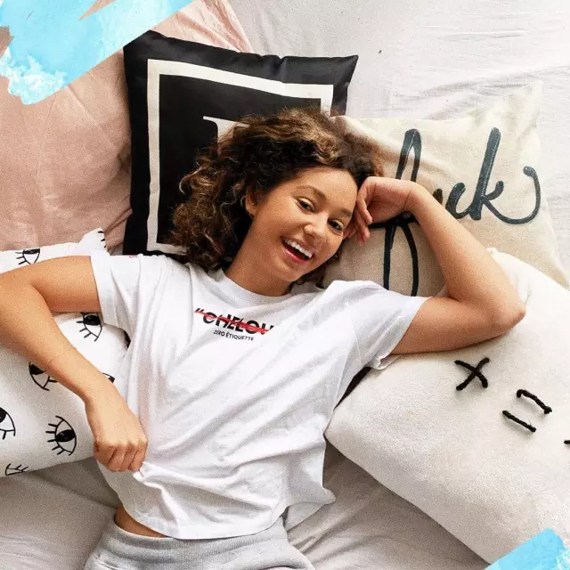 The white t-shirt Jennyfer "Don't call me weird" worn by @lenamahfouf on his account Instagram