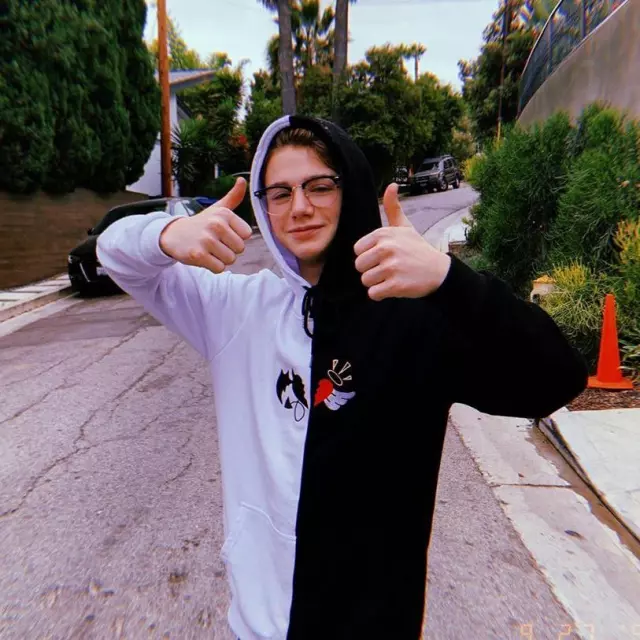 The sweatshirt in black and white of Payton Moormeier on his account Instagram @paytonmoormeier
