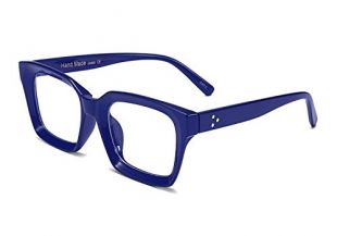 Classic Square Large Eyewear Non-prescription Thick Glasses Frame for Women B2461 (Blue, 50)
