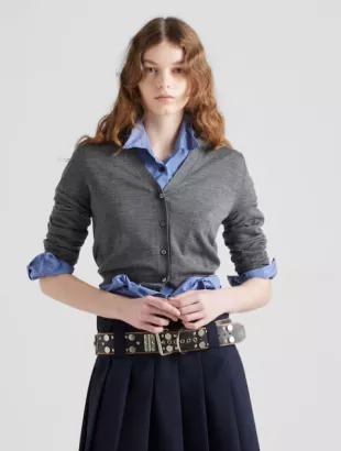 Prada Wool Cardigan worn by Sadie Sink at The Tonight Show Starring Jimmy Fallon on January 30, 2025