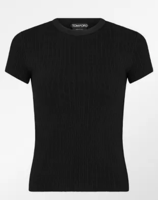 Tom Ford Fine Silk Rib T Shirt worn by Selena Gomez at Vogue Mexico on December 21, 2023