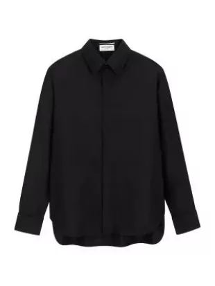 Saint Laurent Boyfriend Shirt In Cotton And Silk Taffeta worn by Selena Gomez at Emilia Perez Premiere at Toronto Film Festival on September 9, 2024