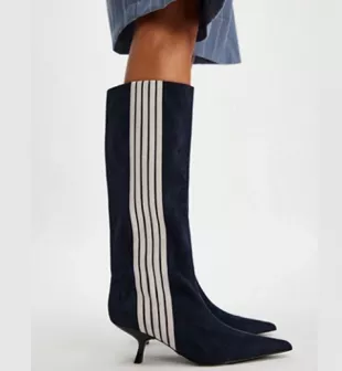 Jeffrey Campbell Black Racing Stripes Kitten Heel Boots worn by Selena Gomez in New York City post on June 9, 2025