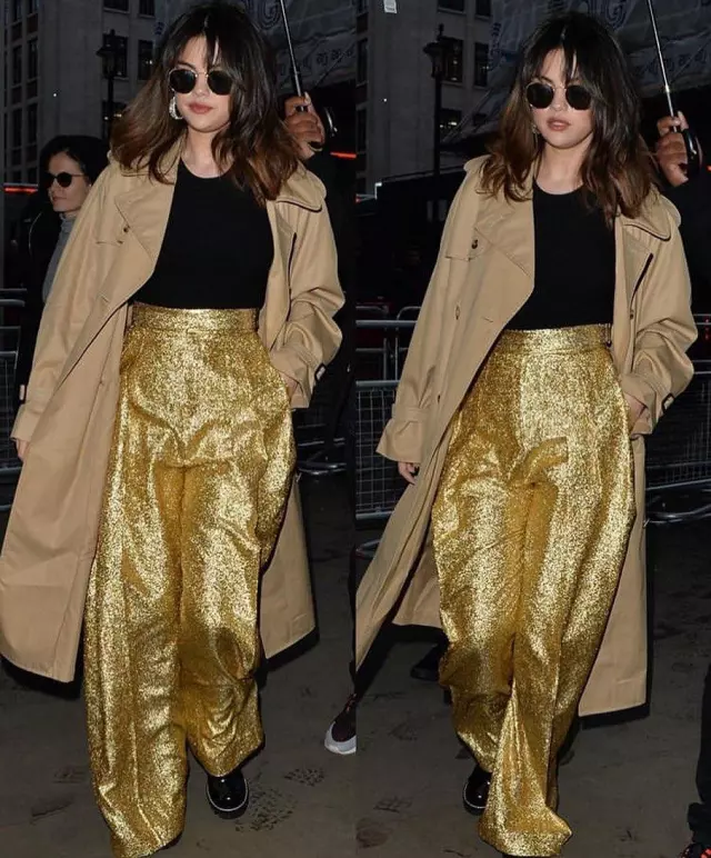 Pants golden Selena Gomez on the account Instagram of @selsstreetstyle