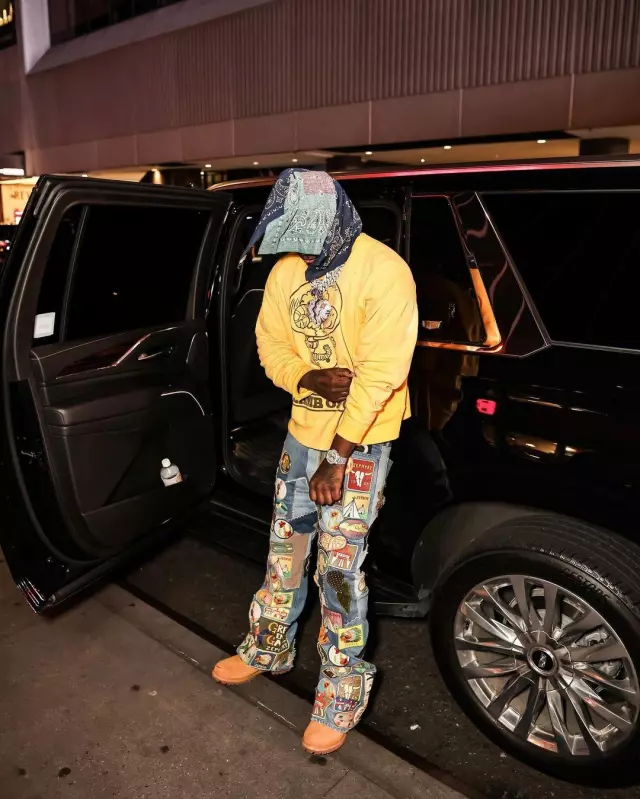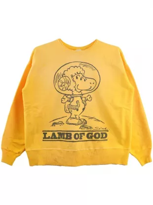 Saint Michael Yellow Lamb Of God Sweatshirt worn by Sleepy Hallow on the Instagram account @_sleepyhallow_
