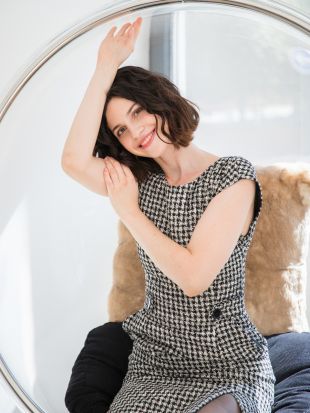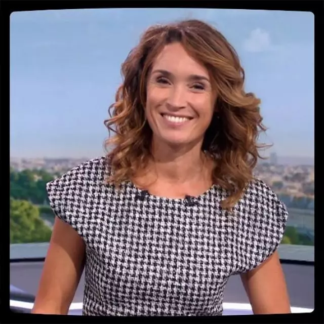 The pencil cut dress midi length in tweed houndstooth of Marie-Sophie Lacarrau on the account Instagram of @stephbellepro