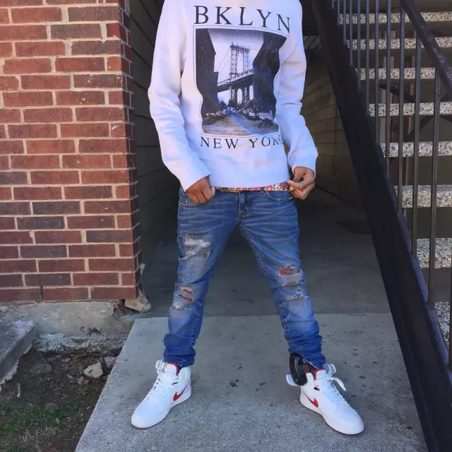 White Nike Sneakers worn by Tay-k on his In­sta­gram Ac­count @Tayk­47shawty