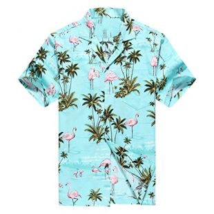 Fabriqué à Hawaï Chemise hawaïenne pour Hommes Chemise Aloha Rosa Flamants Partout dans Turquoise