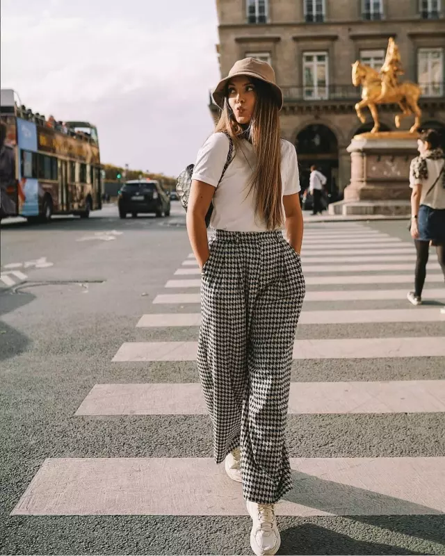The wide legged pants houndstooth worn by Wendy Swan's account on the Instagram of @wendyswan