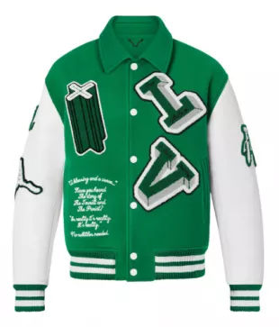 Louis Vuitton Green & White Skeleton Varsity Jacket worn by Wheezy on the Instagram account @wheezy