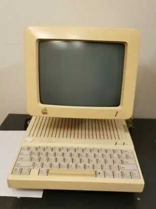 The Macintosh IIc computer (Apple II series) at Stacey Sutton (Tanya Roberts) in the movie Dangerously Yours