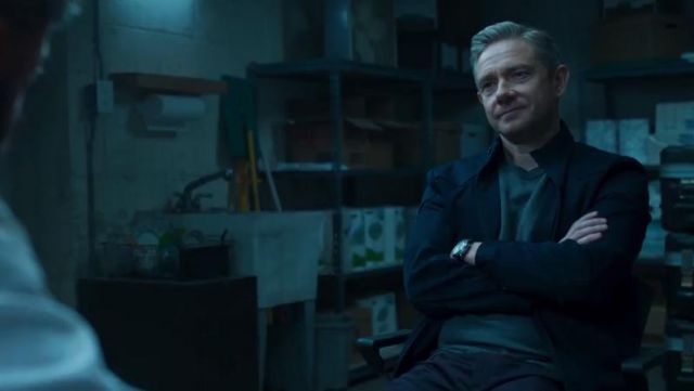 The black jacket of Everett K. Ross (Martin Freeman) in a Black Panther
