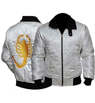 Drive Scorpion Bomber Quilted Style Jacket Inspiration Ryan Gosling Celebrity Shell (Large) White