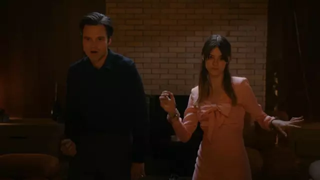 Sandro Bow-Detail Pink dress worn by Noa (Daisy Edgar-Jones) as seen in Fresh wardrobe