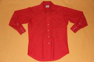 Vintage années 1960 / années 1970 "H Bar C Ranchwear" Solid Red Pearl Snap Button Up Long Sleeve Collar Shirt Made in USA Men's Size Medium