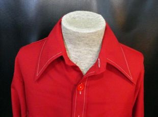 Sears Kings Road rouge vif revers point grand col rockabilly robe chemise grande taille des hommes Vintage!