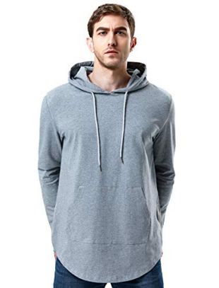 Bertte Mens Hipster Hip Hop Elong Longline Hoodie Side Zipper Long Sleeve T-Shirt (X-Large, Grey- Long Sleeve)