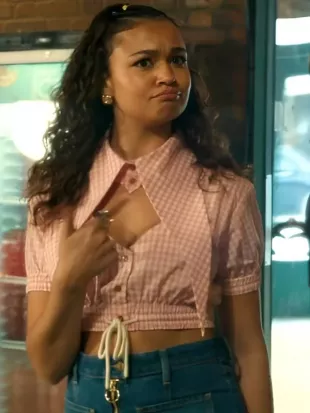 Maintenance Required 2025 Madison Bailey Pink Cut Out Blouse worn by Izzy (Madison Bailey) in Maintenance Required