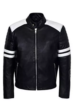 'Mayhem' Hommes Noir avec Blanc Stripe Biker Style Fight Club Veste en Cuir (XS)