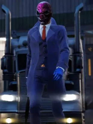 Payday 3 Hoxton James Blue Trench Coat worn by Sheriff Kirby (Bishop Stevens) as seen in Payday