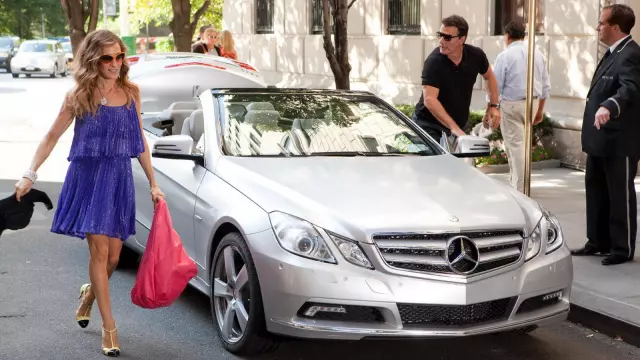 The blue dress pleated Carrie Bradshaw (Sarah Jessica Parker) in Sex and the city 2