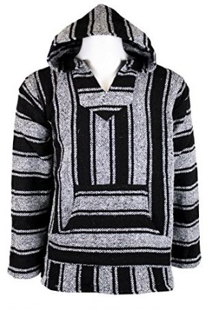 vintage Baja Hoodie Rayé Hippie Jacket 80s 90s Surf Boho Aesthetic Pullover Mens Small Mexico Souvenir Drug Rug Hooded Top