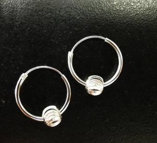 Free Shipping!Sterling Silver Small Hoop Earrings with Diamond Cut Bead, Tiny 925 silver hoops,unisex Hoop Earring, hoop creole everydaywear