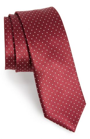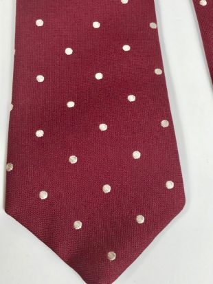 Cravate Slim (2.75 pouces) à pois en blanc et rouge à chevrons (poche carré aussi disponible)