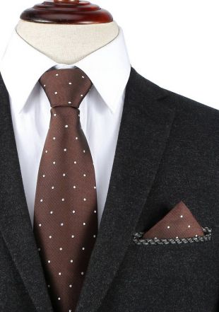 White Polka Dot Brown Tie - Pocket Square Set Matching Set Mens Gift Groomsmen Matching Set Tie Pocket Square Combo Gift Set