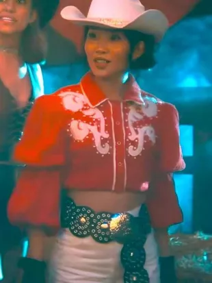 Park Red Cropped Western Shirt worn by Jasmine (Christin Park) in Film The Wrong Paris 2025