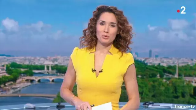 The dress pencil yellow of Marie-Sophie Lacarrau in The journal of 13H of 06/04/2018