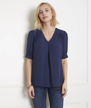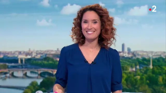 The Blouse, navy lace and folds of Marie-Sophie Lacarrau in The newspaper 13 hours on France 2