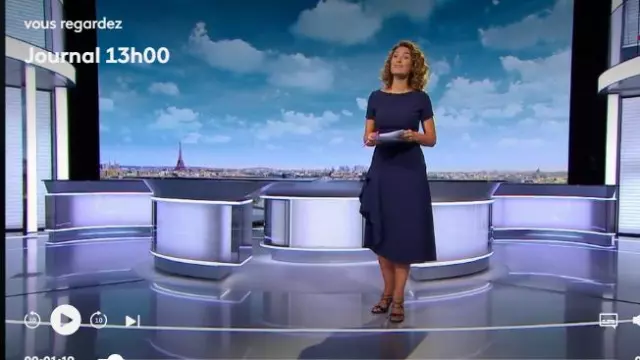 The navy dress flared ruffled Marie-Sophie Lacarrau in the Journal of 13 hours the 03.09.2019