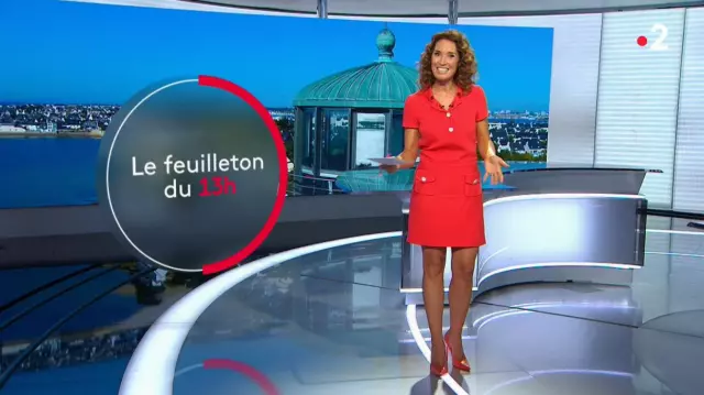 The red dress of Marie-Sophie Lacarrau in the Newspaper 13 hours on France 2