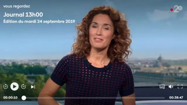 The blue sweater openwork short sleeve of Marie-Sophie Lacarrau in the Journal of 13 hours the 24.09.2019