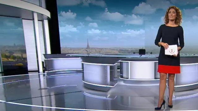 Dress two-tone blue and red worn by Marie-Sophie Lacarrau in Newspaper 13 hours on France 2